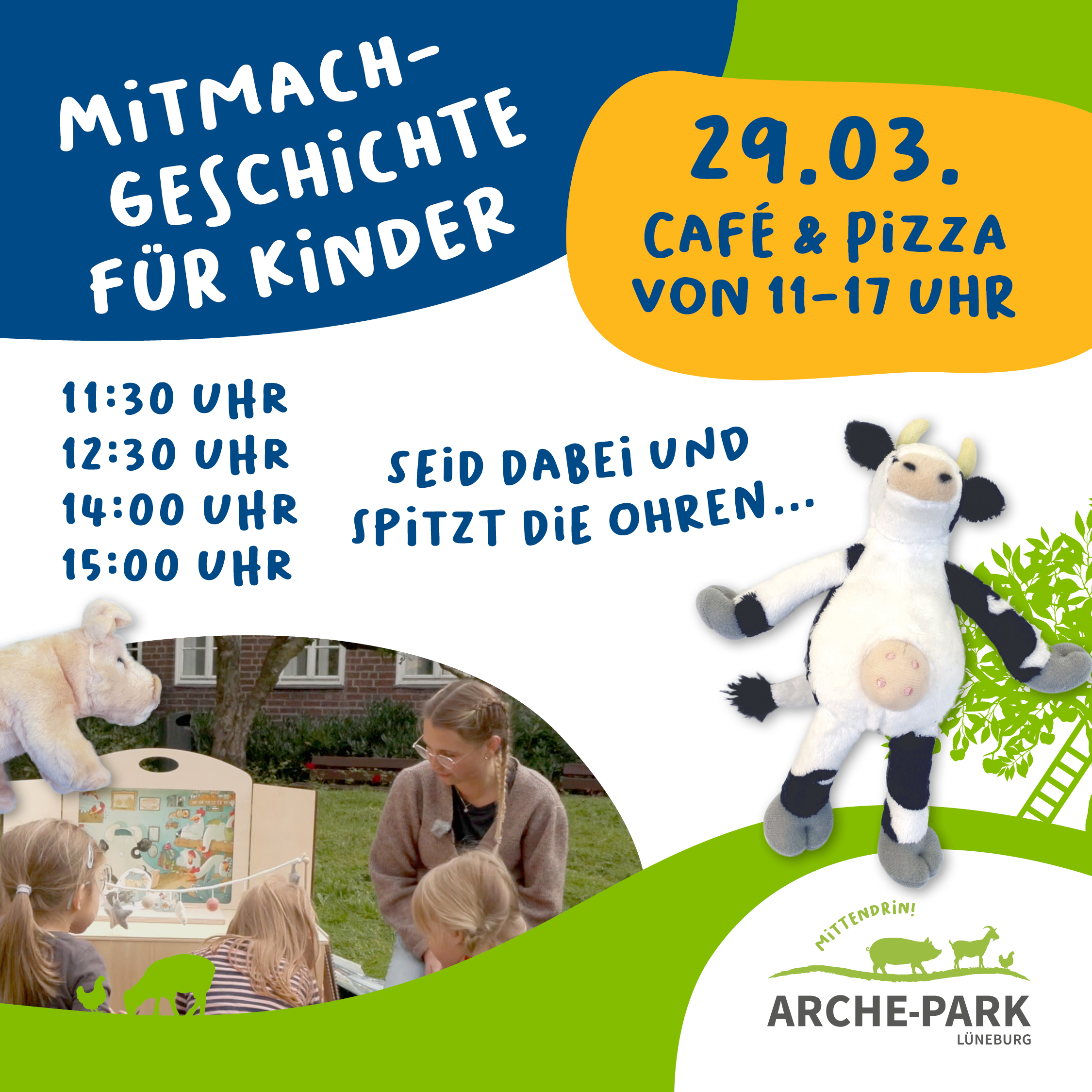 Der Arche-Park mit dem Café Futterküche und Pizza aus dem Holzofen öffnet immer am letzten Sonntag im Monat von 11-17 Uhr (März-Oktober) mit tollen Aktionen.